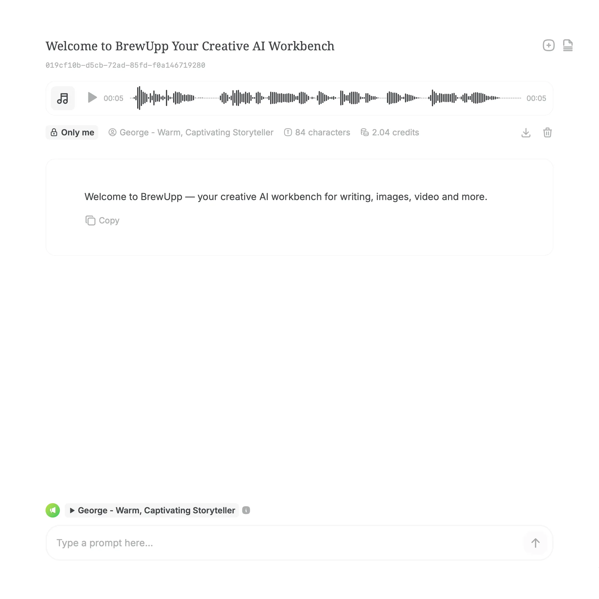 Start with an idea, describe what you need and refine the results — all inside your BrewUpp workspace.